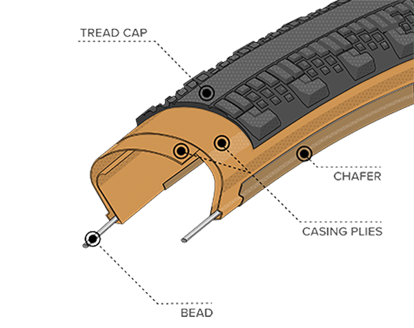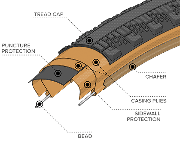ライディングのグラベルの種類によってケーシングの選択に影響を与えるはずです。砂利が柔らかい、鋭利な、ゴロゴロとした、または上記のすべてである場合は、Durable(Bead-to-Bead)ケーシングの追加のパンク保護を検討することをおすすめします。