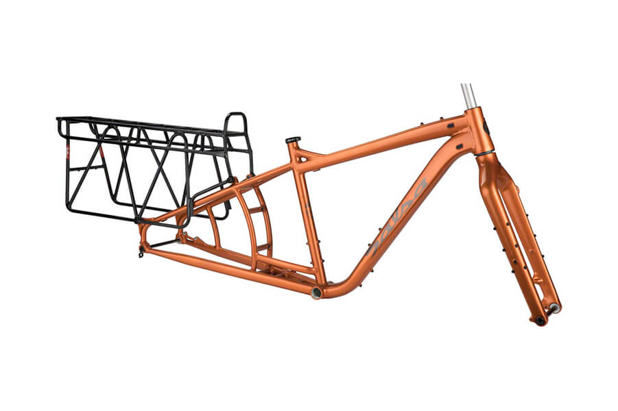フルサイズのパニアバッグを4つ取り付け可能な専用キャリア、トップチューブバッグマウント、4か所のボトル台座、リヤホイール前方のANYTHING CAGEマウントに加え、あらたにデュアル3パックマウント付きのKigpin Carbonフォークが採用されています。