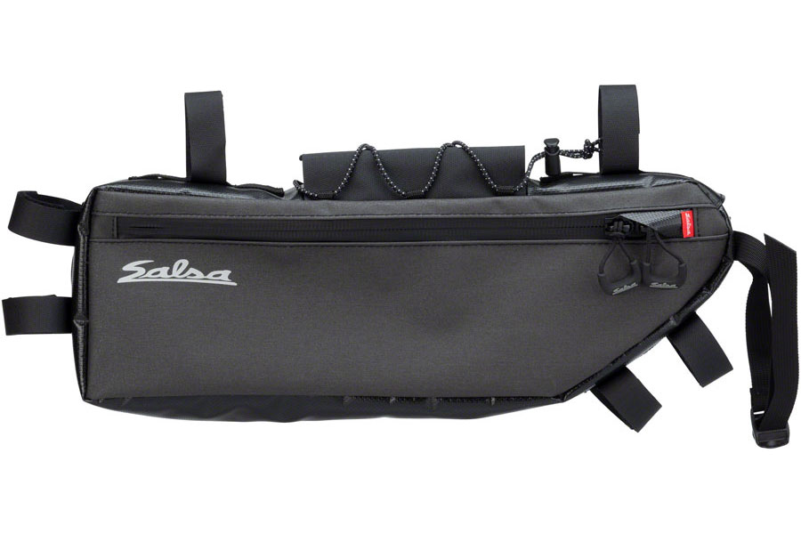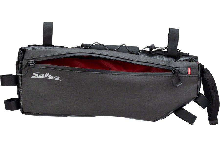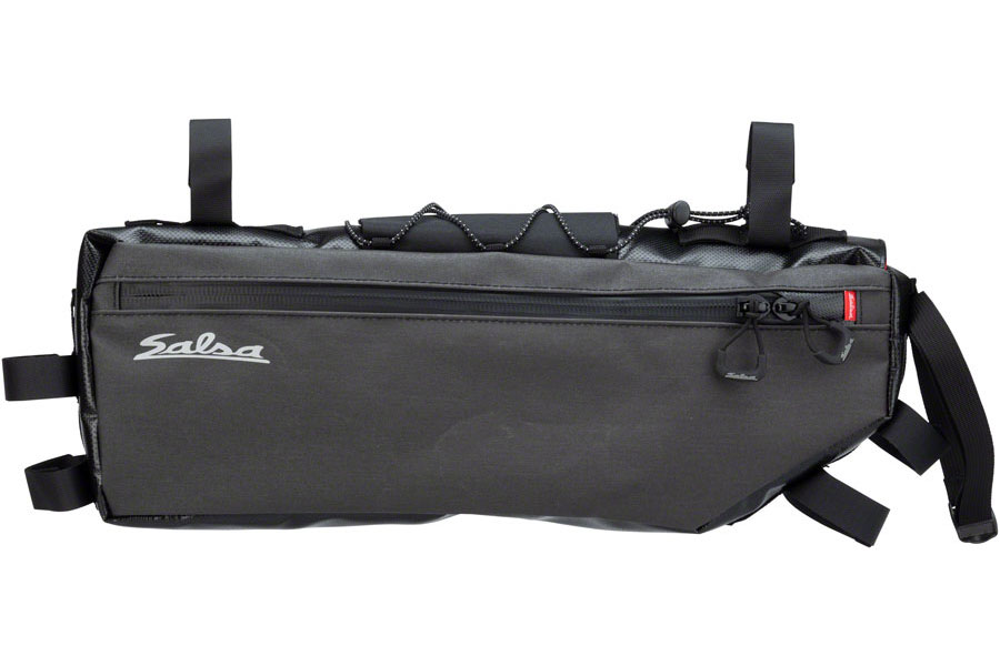 Sewn in zipper for long-lasting durability with easy to use Salsa loop zipper pulls