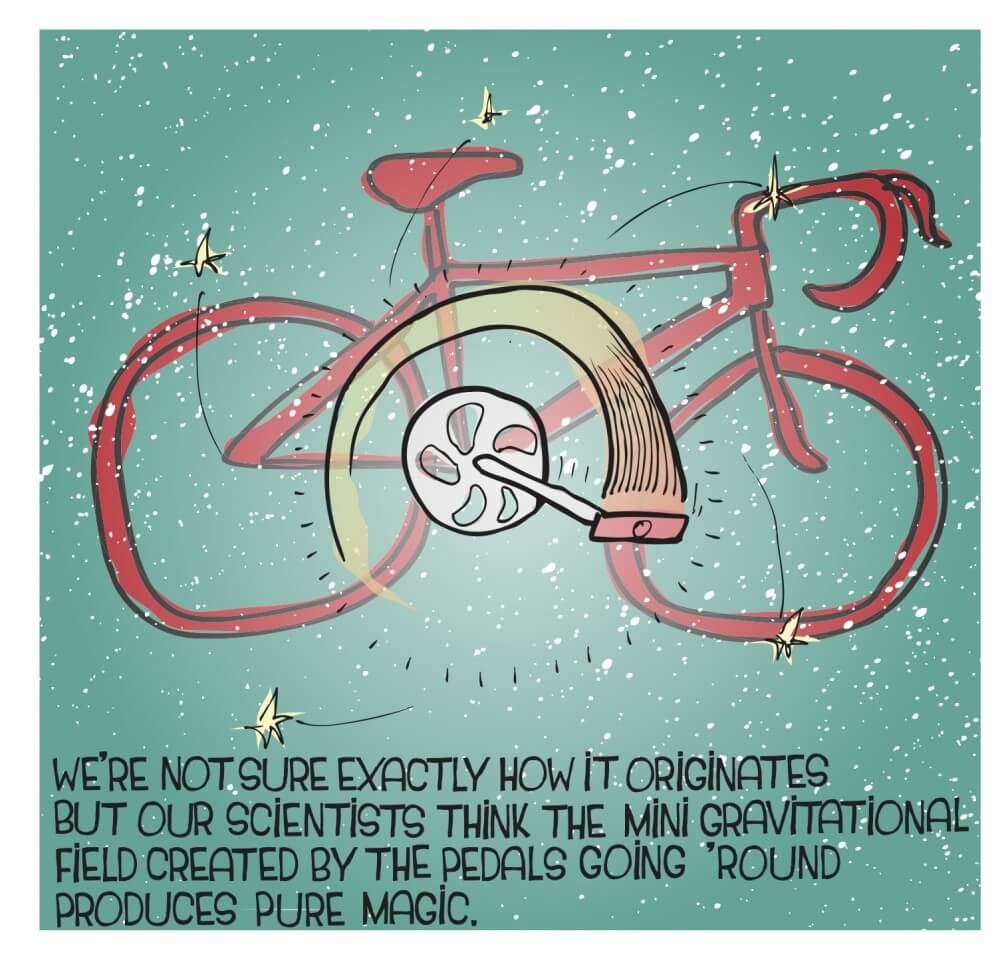 - どうしてかは分からないけれど、私たちのなかの科学者によれば、ペダルを回すことでうまれる小さなパワーが純粋な魔法を生み出しているようなのです。
