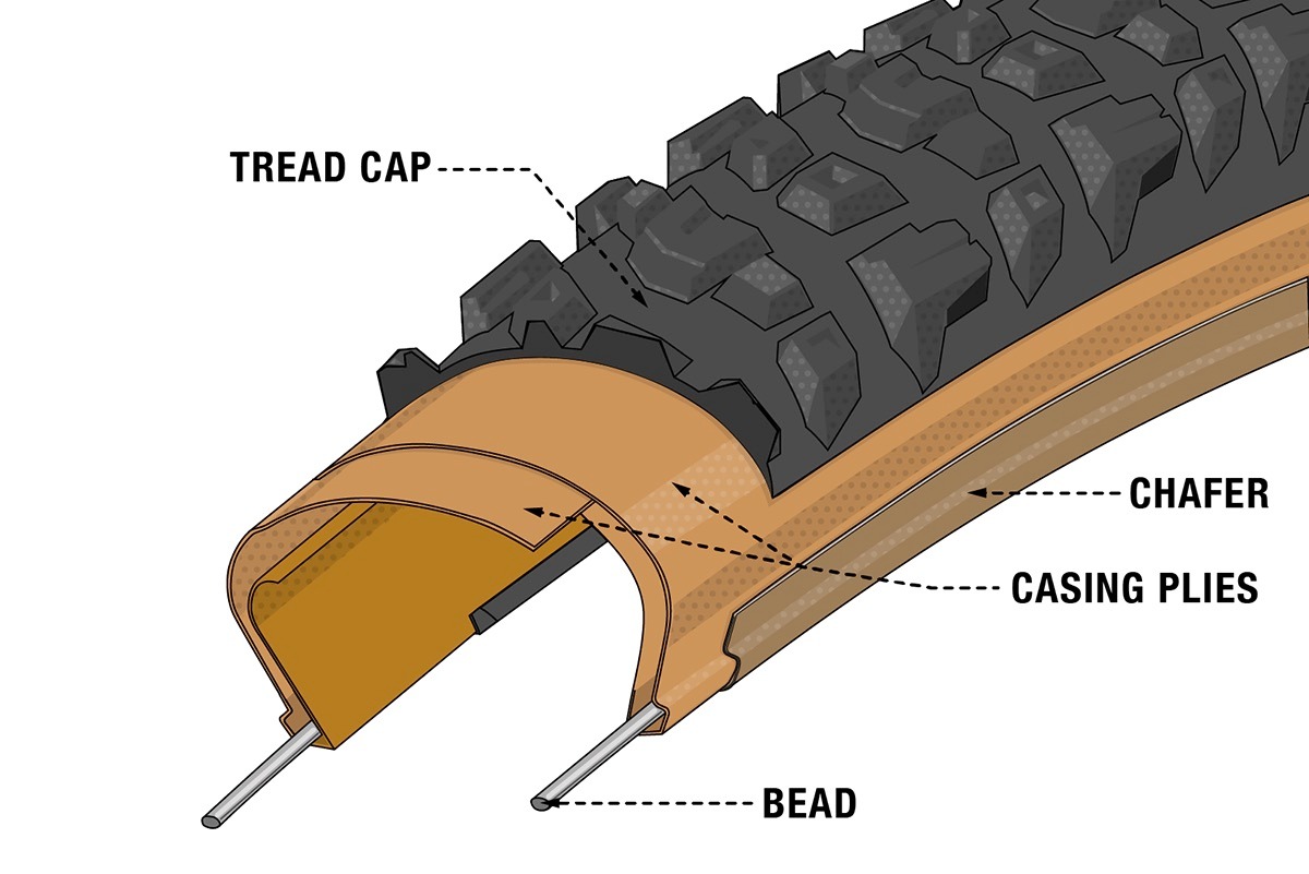 ULTRA DURABLE (SELECT TIRES ONLY)– 耐久性のあるケーシングと同じで、1/2プライの120tpiケーシングとアペックスウェッジが追加されており、摩耗に対する保険とリムへの鋭い衝撃に対する防御線が追加されています。
