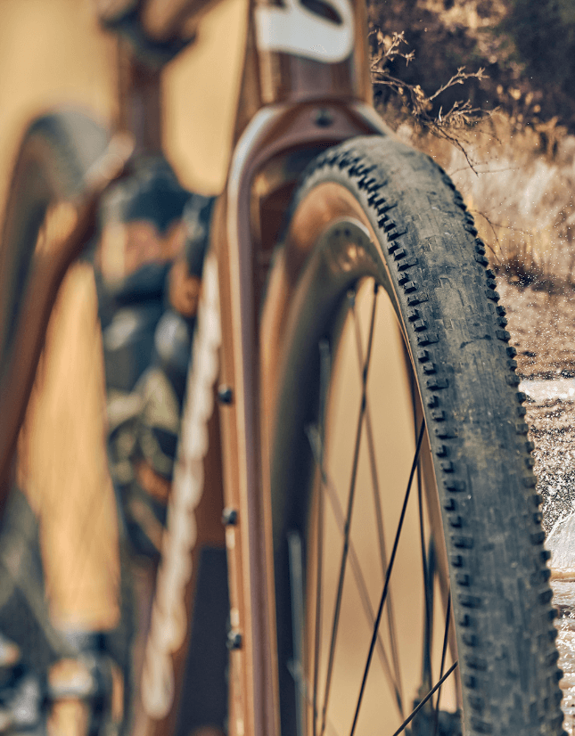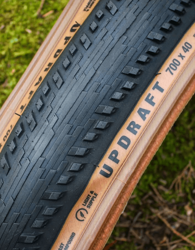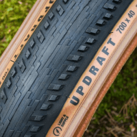 グラベルロードやレースコースでスピードを持続させるためには、Updraftが明らかに勝っています。このグラベルレースタイヤは、ハードパックのグラベルでの加速と速度を最高のパーフォーマンスにするために、中央に高速で転がるモダンなヤスリトレッドを備えており、サポート力のあるショルダーノブは柔らかい予測不可能なコーナーでも安定した走りを実現します。