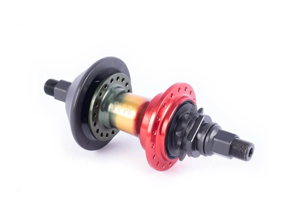ハブの中身をバラしてパーツを入れ変えるだけで、カセットハブにもフリーコースターハブにもなる新しいシステムを搭載したリアハブです。