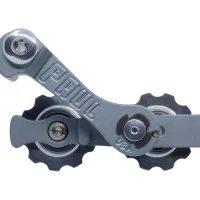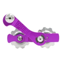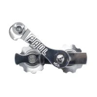 従来のヴァーチカルドロップエンドフレームをシングルスピードバイクに改造できるチェーンテンショナー。ダブルプーリー構造でフロント2速化も可能に。また、プーリー自体もアルミを削り出しで成形し、シールドベアリングを使用して耐久性もアップしております。プーリーの厚みは2.25mmでほとんどのナローチェーンに対応、もちろん1/8”シングルスピードチェーンにも十分使用頂けます。 MADE IN USA